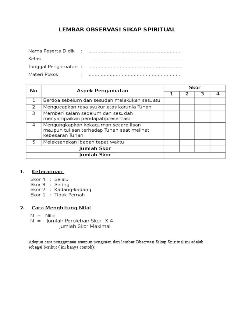 19 format observasi penilaian sikap dapat menggunakan contoh di bawah ini from.
